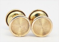 Petits boutons de manchette d'époque 1940 en plaqué or. Poids 6,5 g et taille 14,5 x 9 mm.