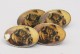 Exceptionnels boutons de manchette à quatre faces oblongues ornées de miniatures de chiens peintes à la main en émail sur porcelaine d'époque 1900. L'on peut voir des variations de détails entre les faces.