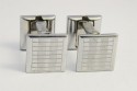Boutons de manchette étriers d'époque 1930 en métal blanc à faces guillochées Art Déco. Poids 8,9 g et taille 11,5 x 11,5 mm.