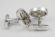 Boutons de manchette vintage en métal blanc vers 1970. Poids 14,5 g et diamètre 20 mm.