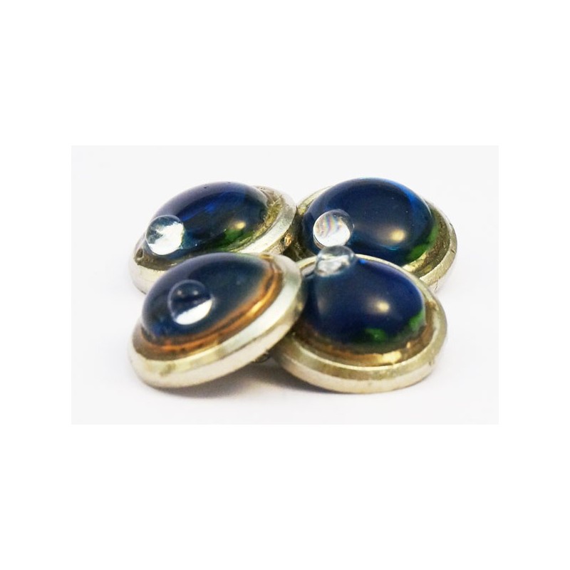 Curiosité: sur chaque cabochon est coulé une petite bille de verre blanc. Poids 24,9 g et diamètre 18 mm.