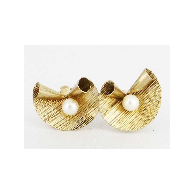 Boutons de manchette à faces assez kitsch avec cabochon de perle, d'origine USA années 1950.
